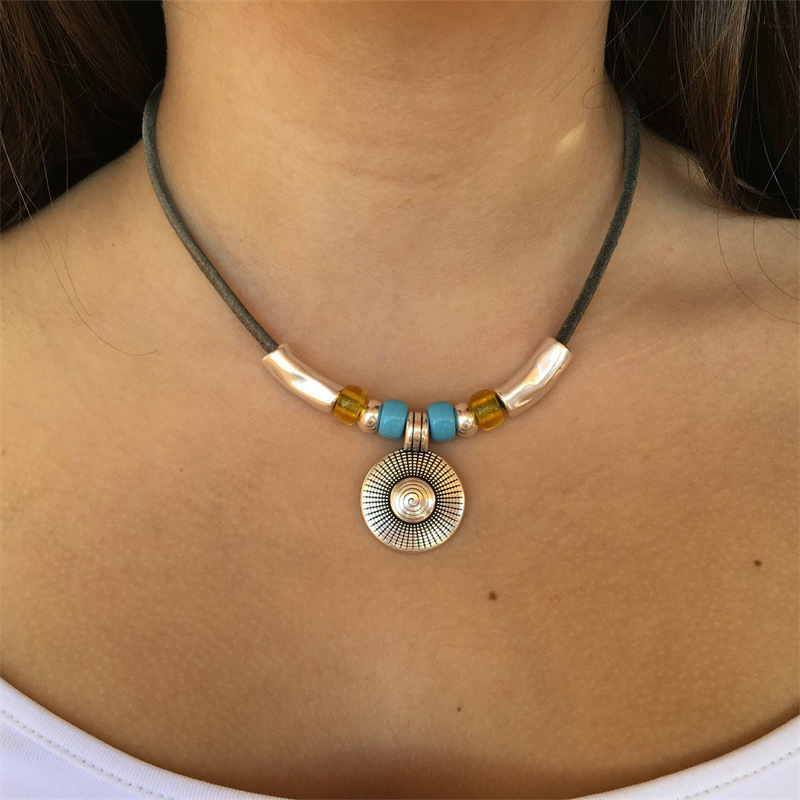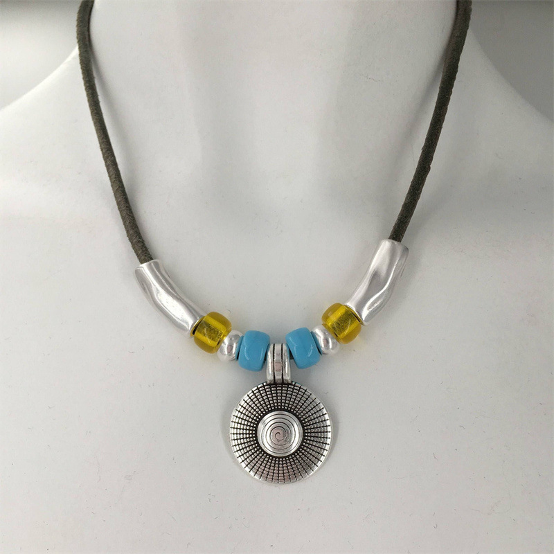 New Turquoise Round Necklace Alloy Round Brand CCB Beaded Wax Rope Chain Punk Necklace