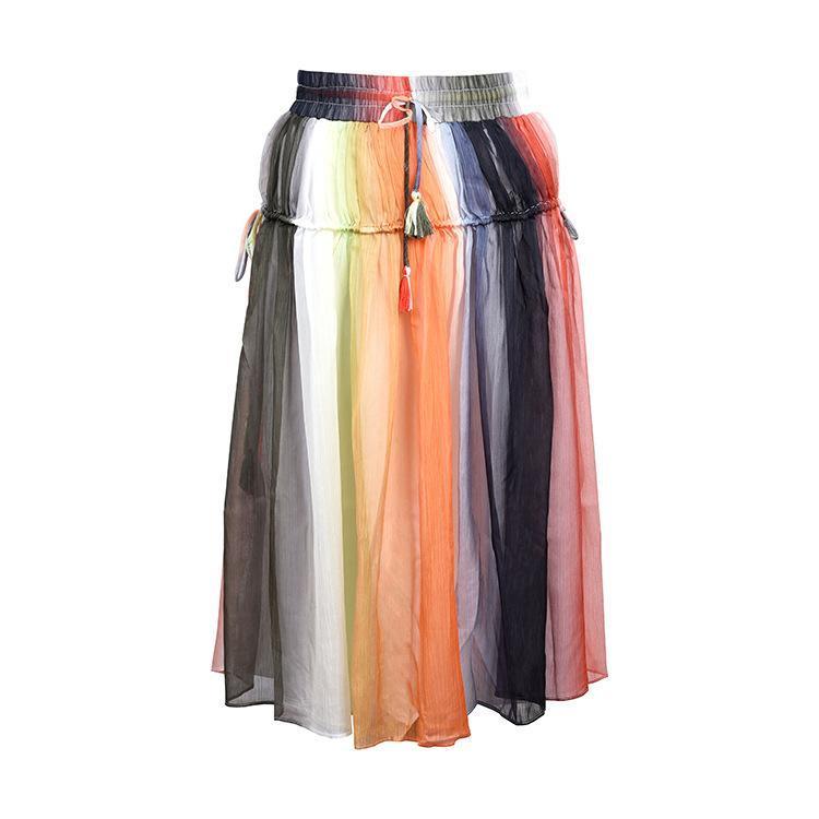 Spring And Summer Boho Style Color Strips Pleated Striped Skirt