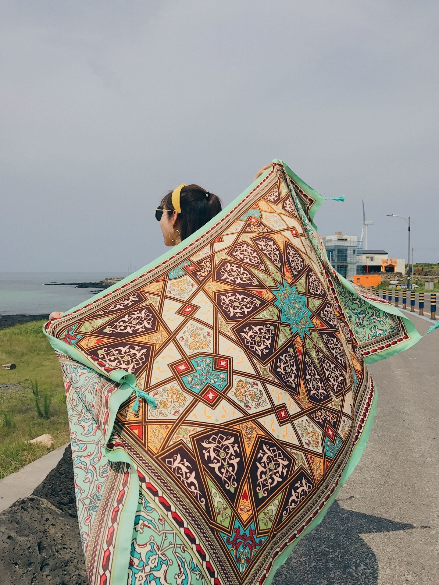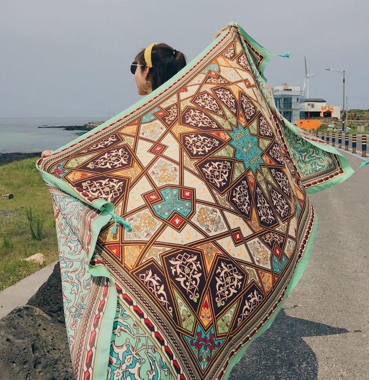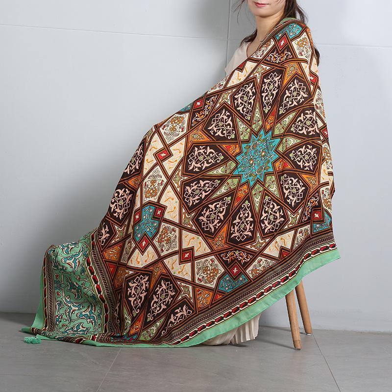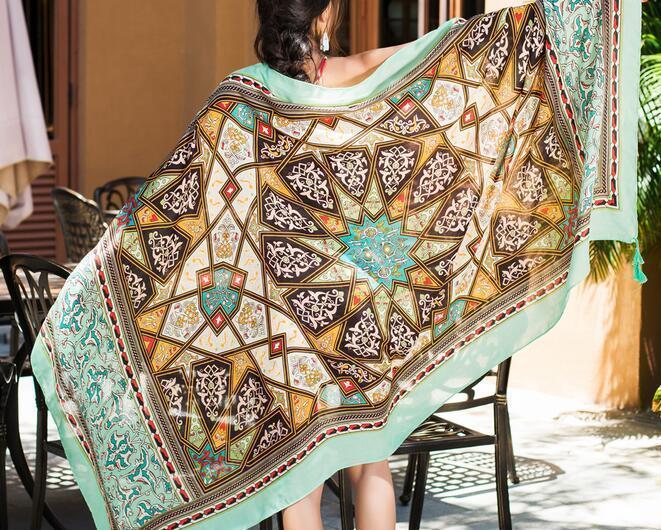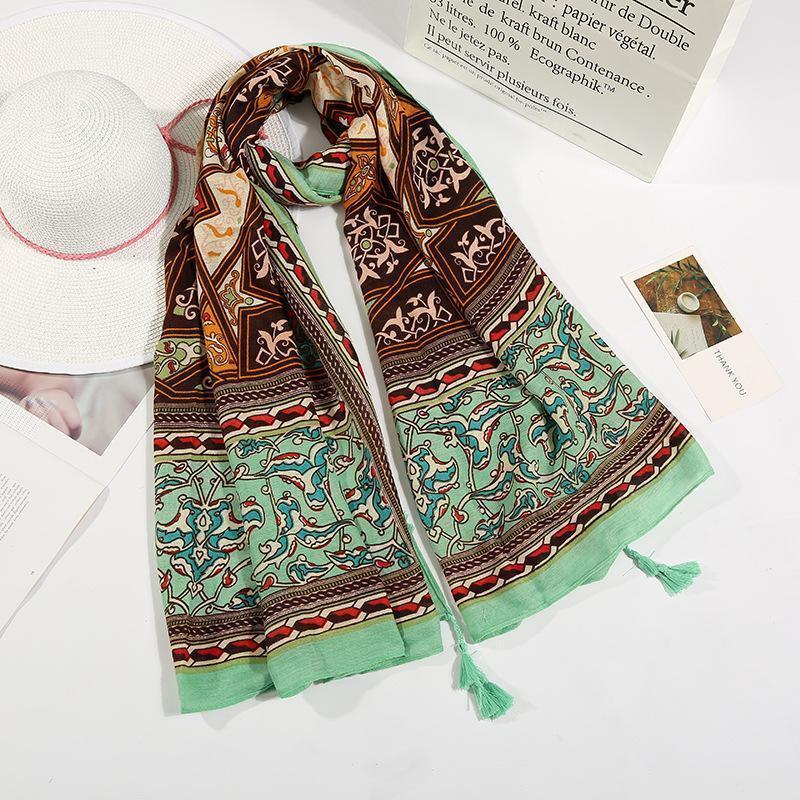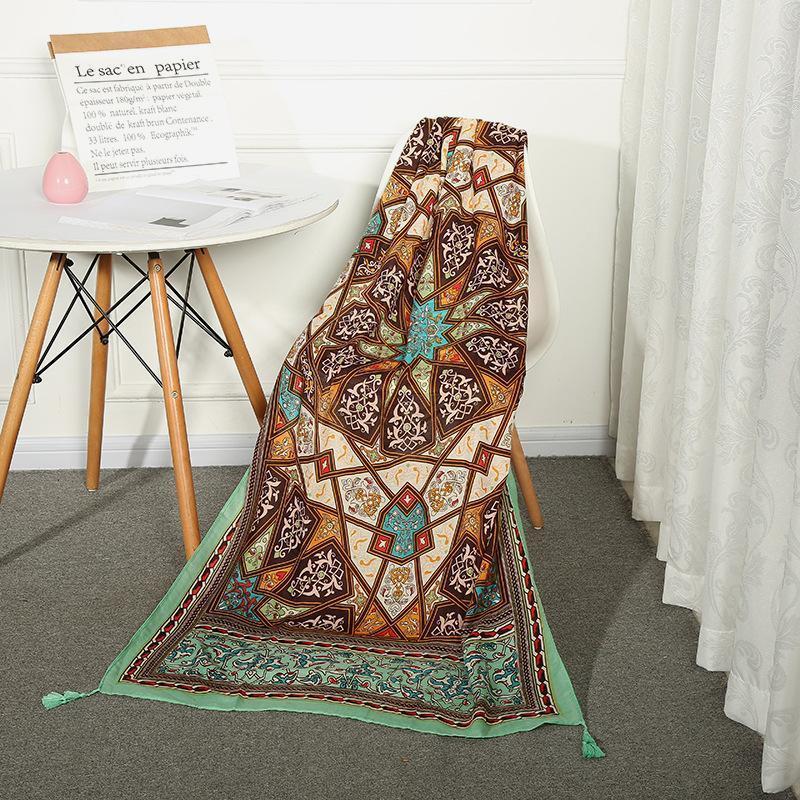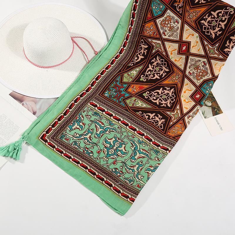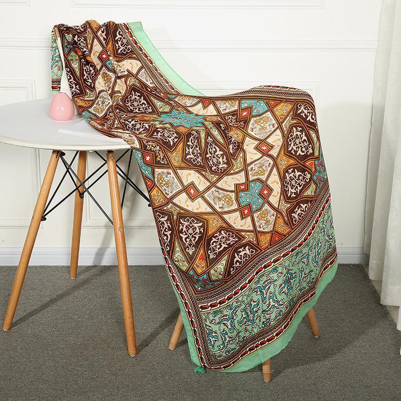 Green Rectangle National Style Vacation Printing Sunscreen Scarf Shawl Beach Towel