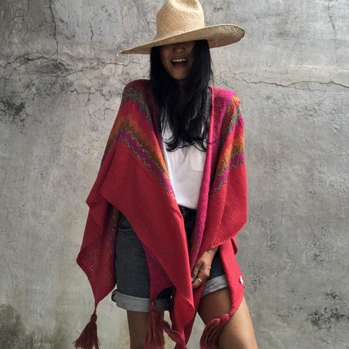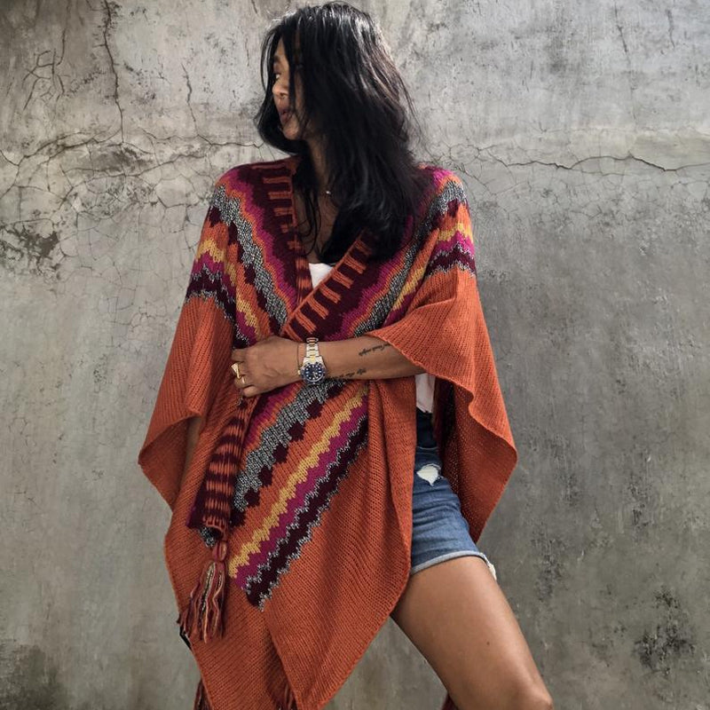 Striped sweater shawl sleeveless knit cape over women's thick blanket coat