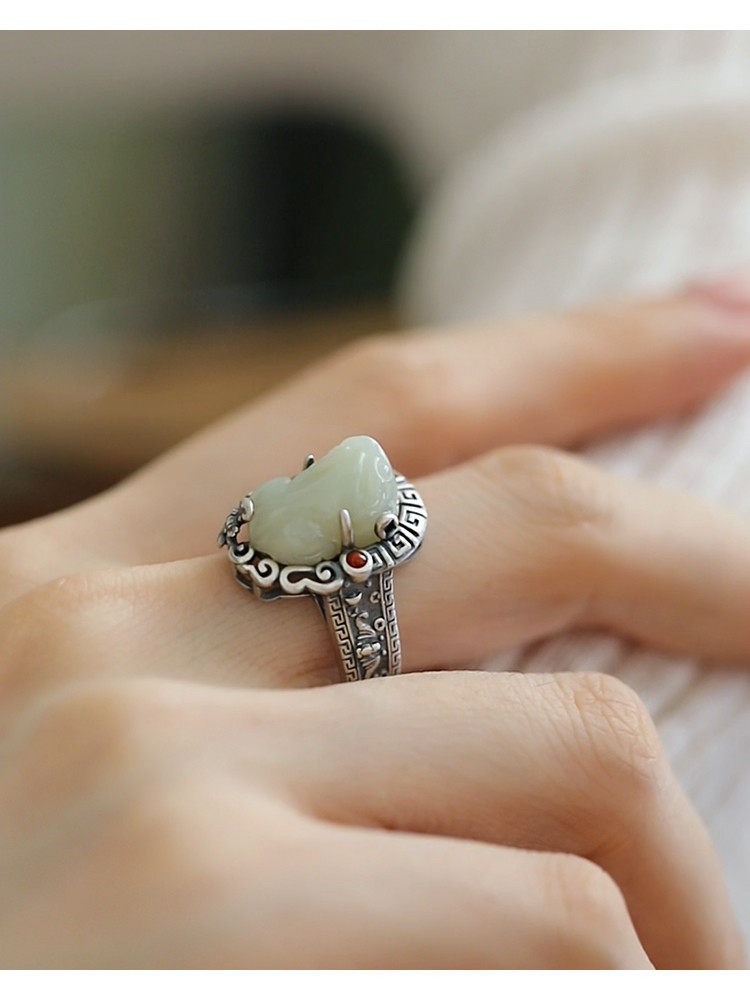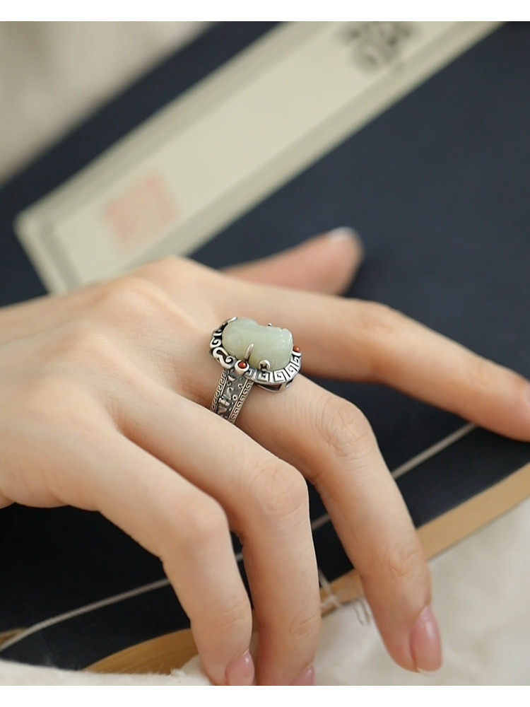 925 Silver Retro Classic Ethnic Style Lucky Ring Opening Adjustment Advanced Sense Versatile Ring