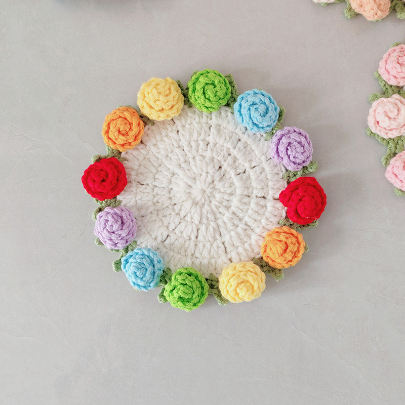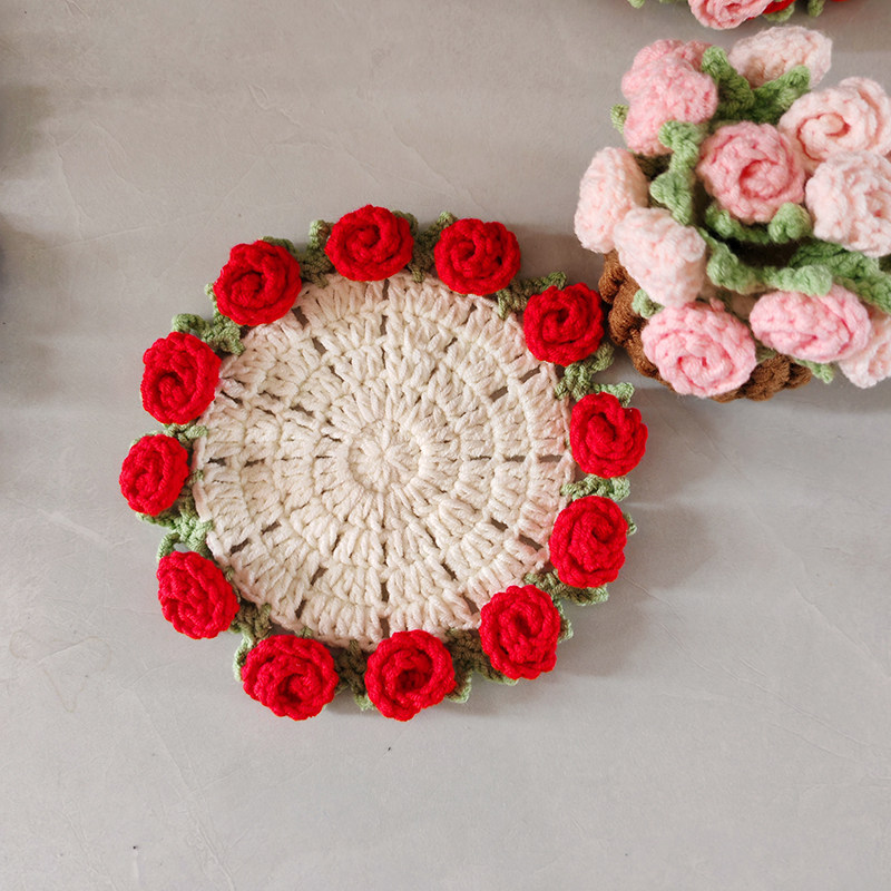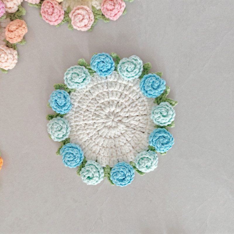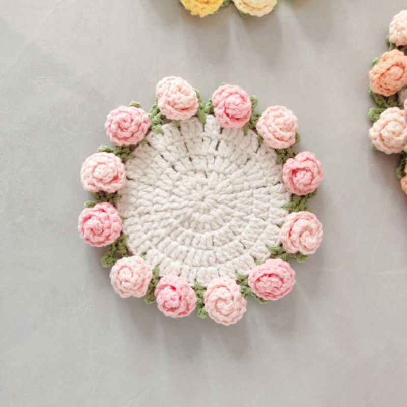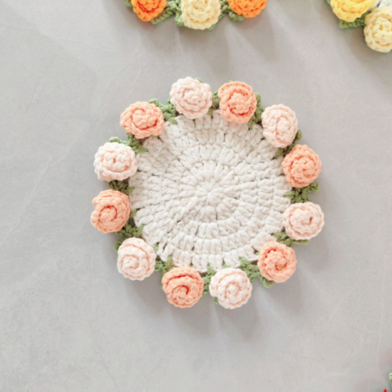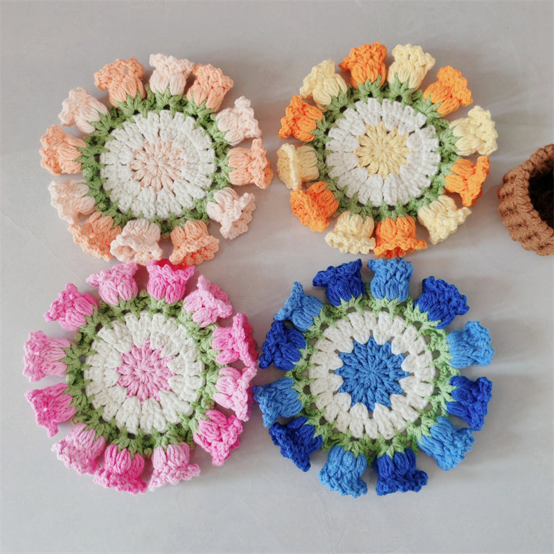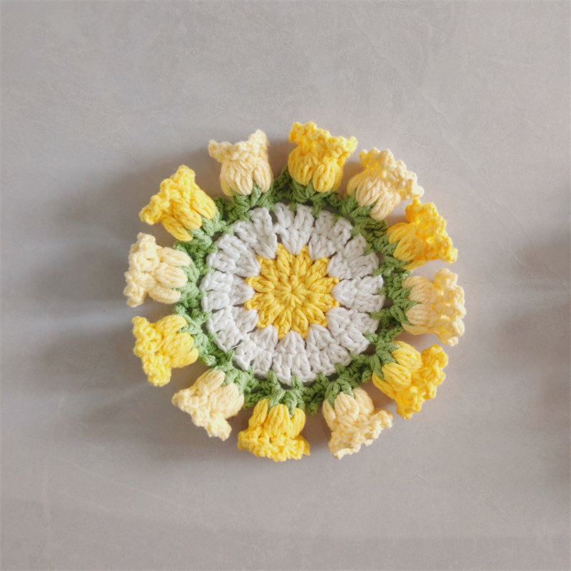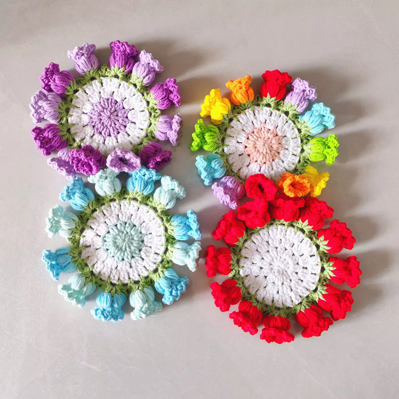 Hand Crocheted Wool Lily of The Valley Coaster Thermal Insulation Pad Small Bouquet for Girls Gifts