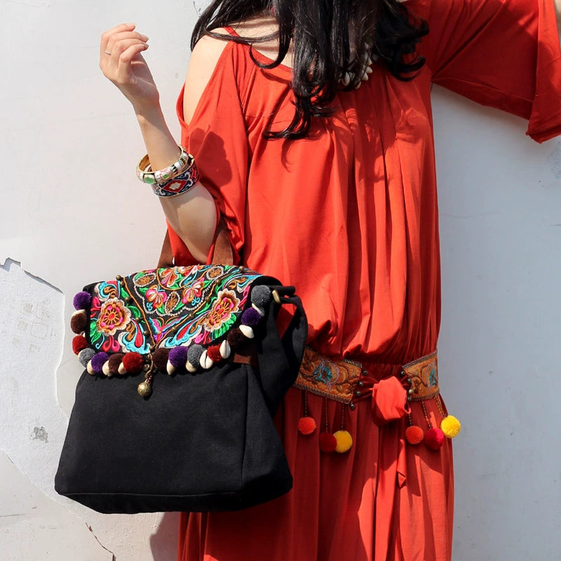 Original Ethnic Style Embroidery Bag Retro Tibetan Styl College Literary Canvas Bag Shoulder Bag Messenger Bag