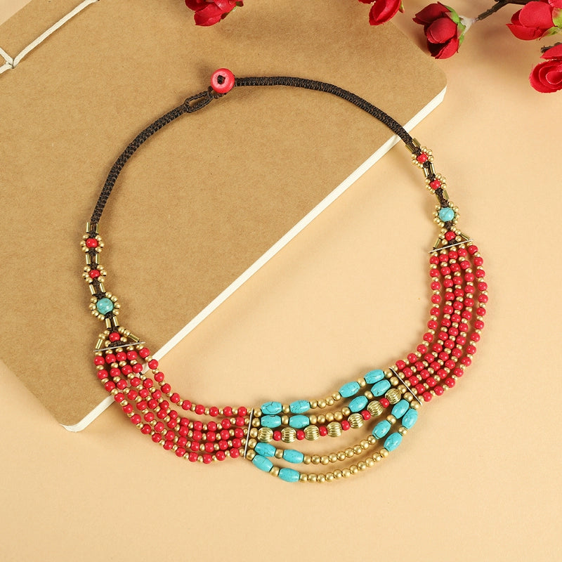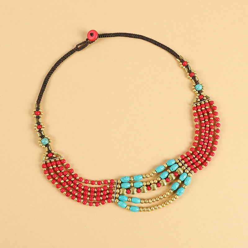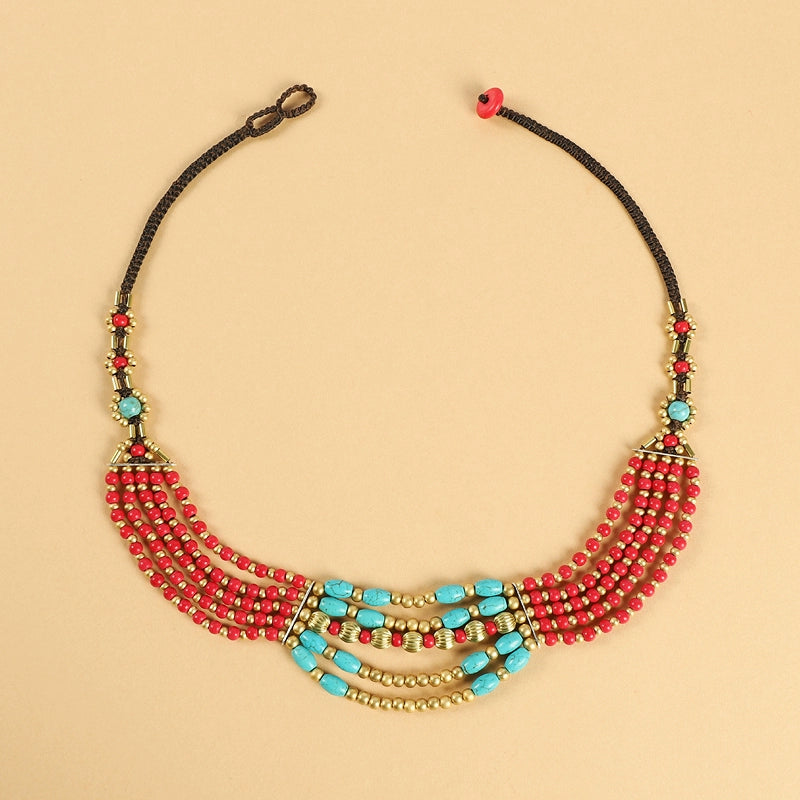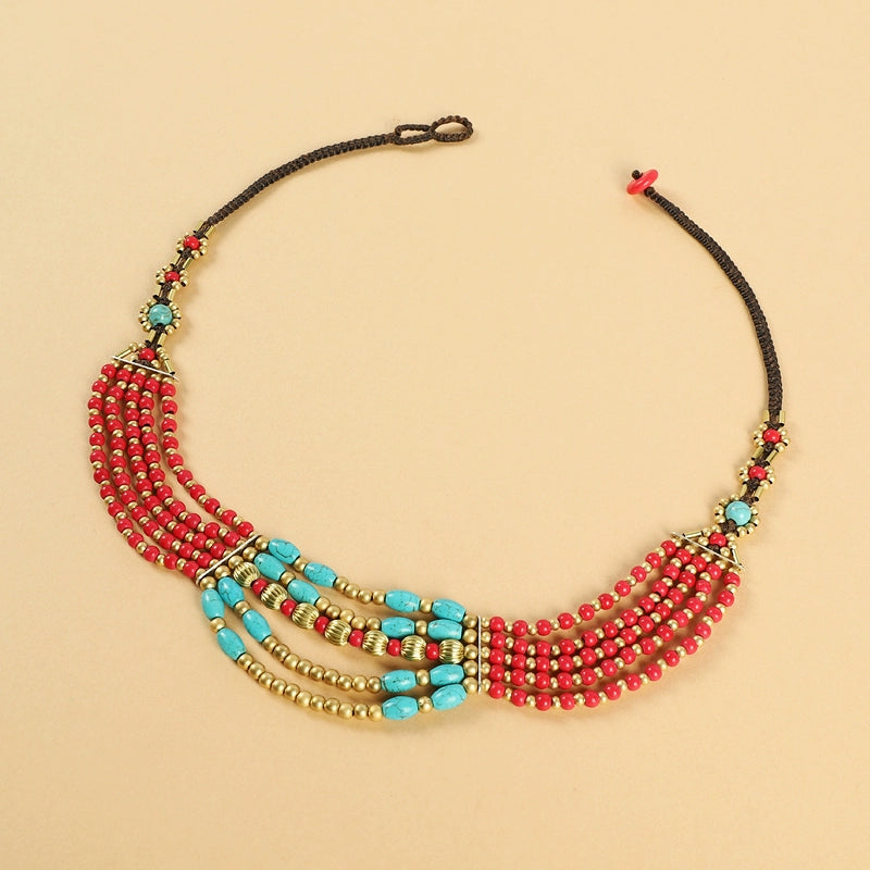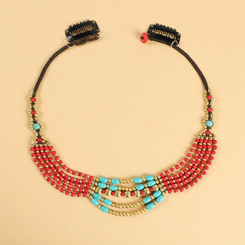 Original Design Retro Exotic Tibetan Nepalese Necklace Hand-woven Ethnic Style Multi-layer Forehead Headdress for Women