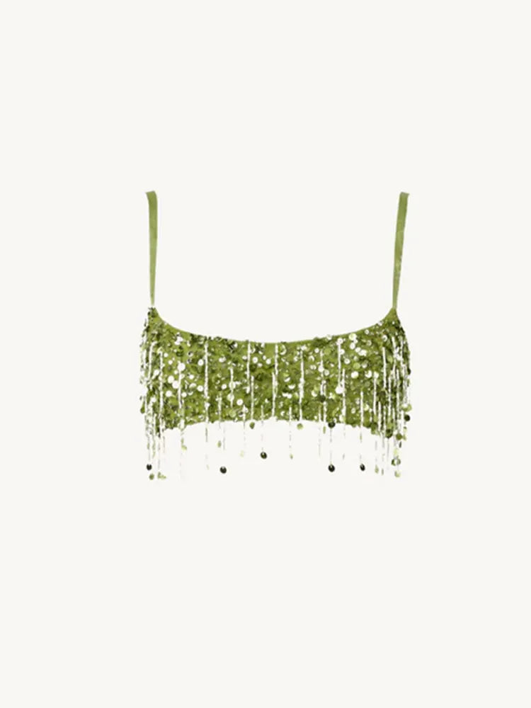 Sexy Sequin Tassels Beach Outfits Women Shiny Fashion Bikinis Sets Female 2025 Summer Holiday High Street Raves Sets 2 Pieces