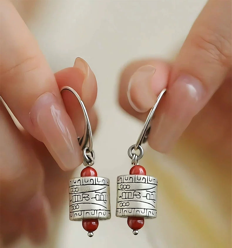 Talisman Bucket Beads 925 Silver Earrings New Tibetan Retro Old Elegant Ethnic Style Festive and Safe Versatile Earrings