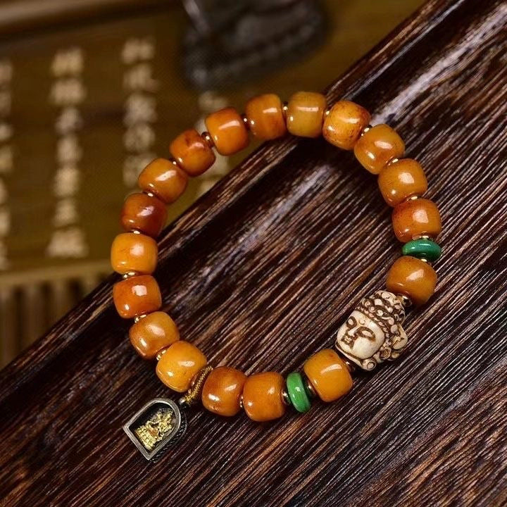Tibetan Yak Bone Bucket Beads Cultural Play Bracelet Single Circle Return Bone Guanyin Accessories Tibetan Retro Men's and Women's Versatile Bracelet