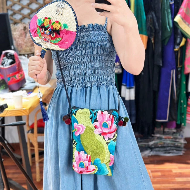 Lotus Embroidery, Embroidery Change Bag, Literary and Artistic Fan Embroidery Gift Bag