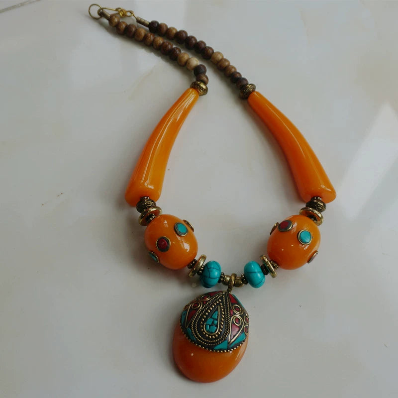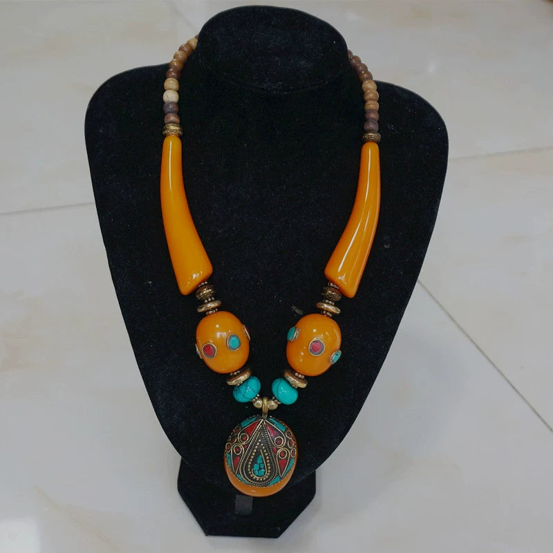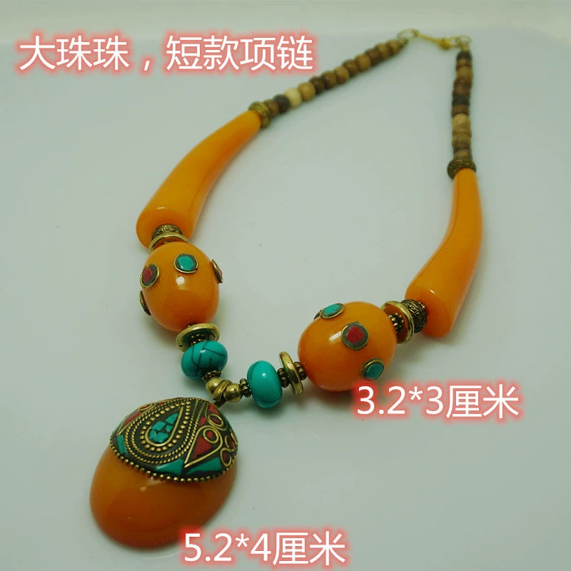 Ethnic Style Tibetan Accessories Nepalese Handmade Necklace with Large Copper Beads Exaggerated Necklace