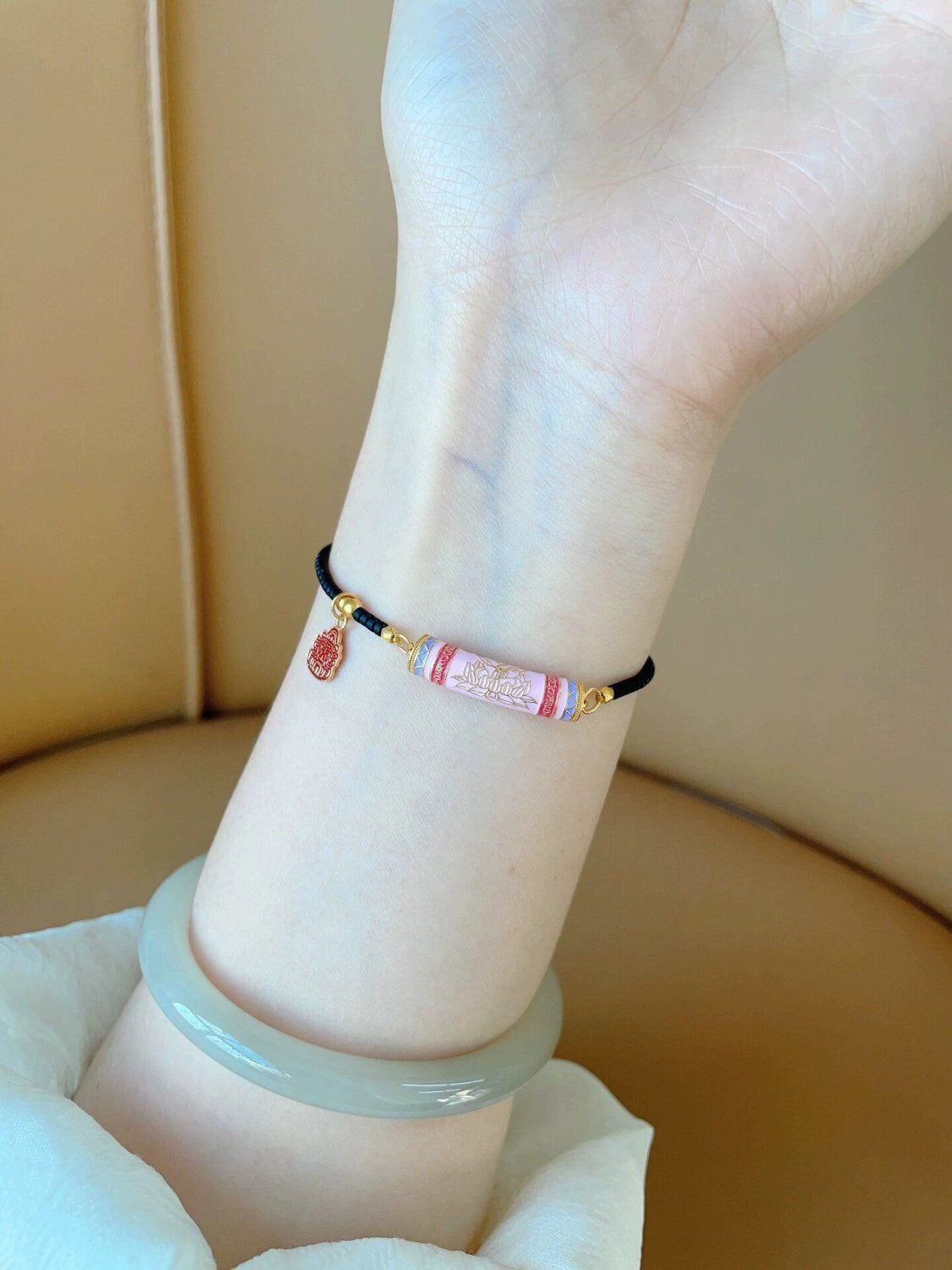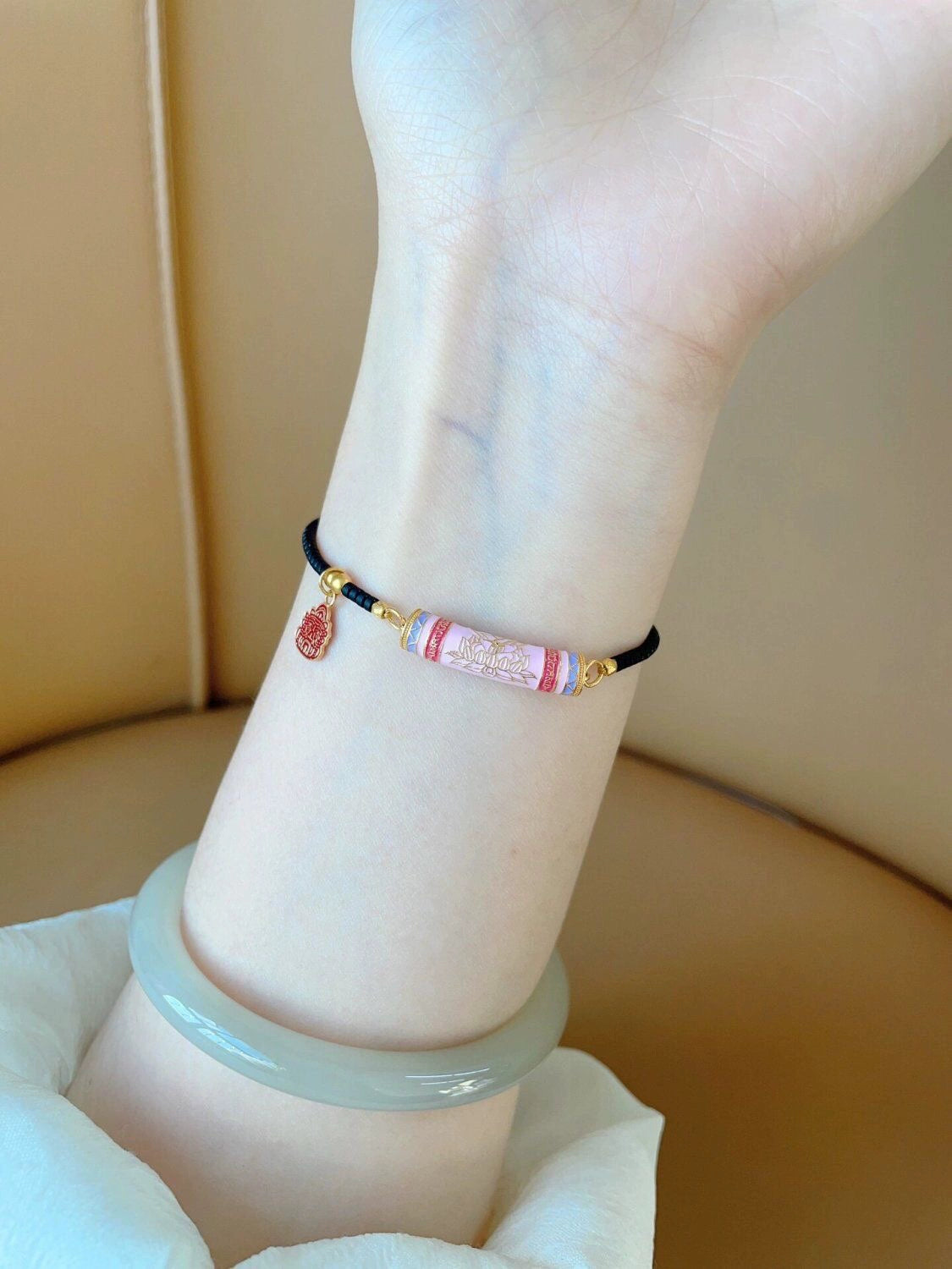 Zakiram Pink Girl Hand Rope Auspicious Good Luck Double Niche Ins Versatile Personality Bracelet Material:Alloy
